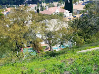 When we arrived at Top of Reseda Trailhead we realized we haven't been there before. We agreed we had hiked (or walked) around a park that was at the end of Reseda, but it wasn't this one. Reseda dead ends at a massive parking structure with various hiking trails. Do yourself a favor and park at the very top, since parking is only $5. Otherwise, you can park for free, but be prepared for an uphill walk that isn't too pleasant. When you exit your vehicle pause for a moment to take in the gorgeous view of the MP Mansion estates, each equipped with their own pool and tennis court. Man! I don't need to be rich, but I would definitely LOVE to have my own pool and tennis court when I retire. I've utilized my father's gorgeous community pool during the summer months, and befriended a handful of the residents. His place has a wonderful sense of community, and I really enjoyed my time there. I don't know just yet if I prefer this sense of community over a private Olympic style pool, where I'd entertain friends and family. But I've digressed yet again. The walk uphill is actually a great warm up for the hilly hiking to come. At the entrance to the hiking trail I asked a local about the two different paths. We were told the hiking trail to the right is pretty hilly (up and down), the entire time. Hence, more strenuous. That the hiking trail to the left is pretty flat in comparison. Be forewarned however, that although there are long enough treks of flat land, there are a handful of hills. Which means I would rate this in as medium difficult, on a scale of beginner to advanced.